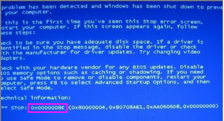 0x0000008e蓝屏代码是什么意思?电脑蓝屏是很常见的一种电脑故障,导致电脑发生蓝屏的原因非常之多,解决方法也不尽相同.如果知道蓝屏代码的意思,我们就离问题的解决又近了一步.今天小编就和大家分享0x0000008e蓝屏代码的意思是什么.