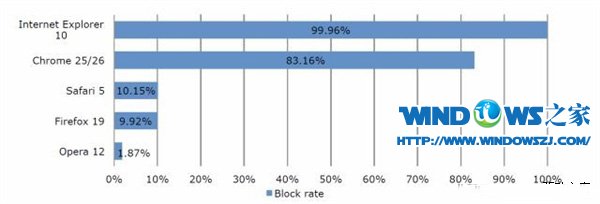 根据NSS实验室周一发布的一份新研究报告,InternetExplorer10在Windows8上几乎能抵御所有的恶意网站。除了IE10之外,NSS实验室还