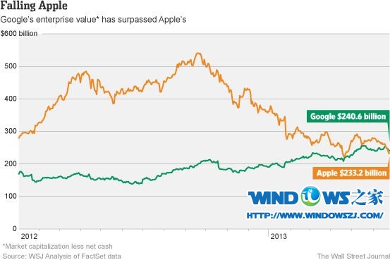 财经信息提供商FactSet的最新数据显示,按企业价值计算,谷歌已在上周超越苹果公司,成为全球最具价值的科技企业。FactSet对于“企业价值”的定义是:企业市值扣除银行存款,即为企业价值。