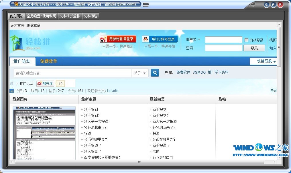轻松推万能文本格式转换是一款多功能的文本格式处理软件,可以把你的帐号列表转换格式用来导入群发软件等等。