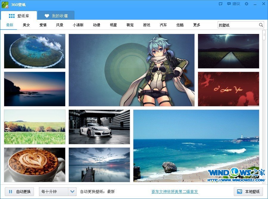 360壁纸美女、风景、小清新、动漫、明星、爱情、萌宠、影视、汽车,海量壁纸任你选择,分类更详细,内容更丰富,时时为您添加最新的壁纸,让您的电脑天天都有最新、最精致的表情。