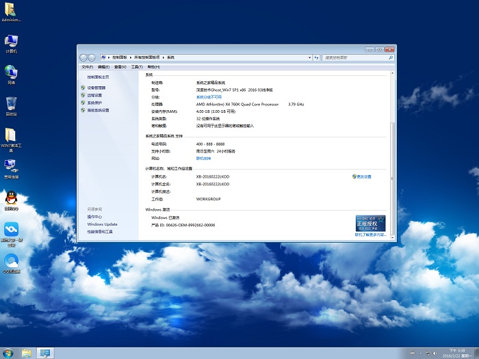 深度技术纯净版系统无任何OEM信息并完美激活windows7操作系统,这才是你的专属。