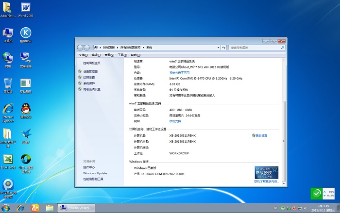 可能会有个别电脑出现未激活的现象,进入系统后桌面放置有WIN7激活工具集之快捷方式,可以进入选择激活工具进行激活。相关教程推荐:Windows7永久激活。